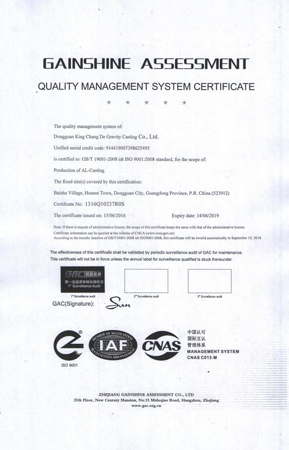 東莞金長德重力鑄造有限公司始建于1990年,是一家專業(yè)從事鋁合金重力鑄造、低壓鑄造、砂型鑄造的企業(yè)。位于廣東省東莞市虎門鎮(zhèn)白沙一村,已經(jīng)有三十多年的歷史,專業(yè)從事于鋁合金鑄件的生產(chǎn)和加工。我司除了自己設計制作各種鑄造類模具外,鑄造和機械加工為一體是我公司的另外一個生產(chǎn)特色。我們可以根據(jù)客戶的要求,來樣,來圖進行模具的設計和產(chǎn)品的生產(chǎn),做出各種毛胚件和成品件。還有自動射芯機,拋丸機,噴砂機,熱處理機器多臺,CNC數(shù)控加工中心,銑床等設備。 我司的產(chǎn)品領(lǐng)域包括了新能源電機、機器人零件、汽摩配件,火車零件,機械零件,馬達風機,空壓機系列,印刷機械零件,木工和醫(yī)療器械零件等類型,產(chǎn)品出口到意大利,法國,美國,英國,以色列,日本,臺灣等國家和地區(qū),深受國內(nèi)外客戶的認可和好評。